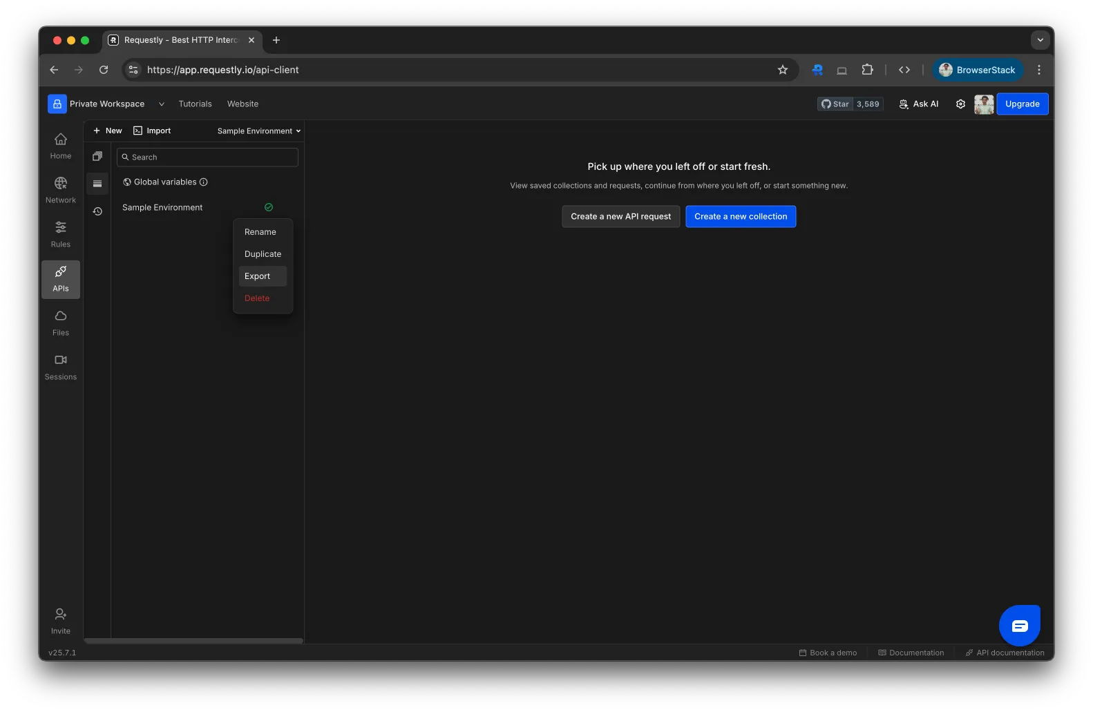 .json file and import them back into Requestly whenever needed. This helps you back up environment variables, move them across devices, or sync with teammates.