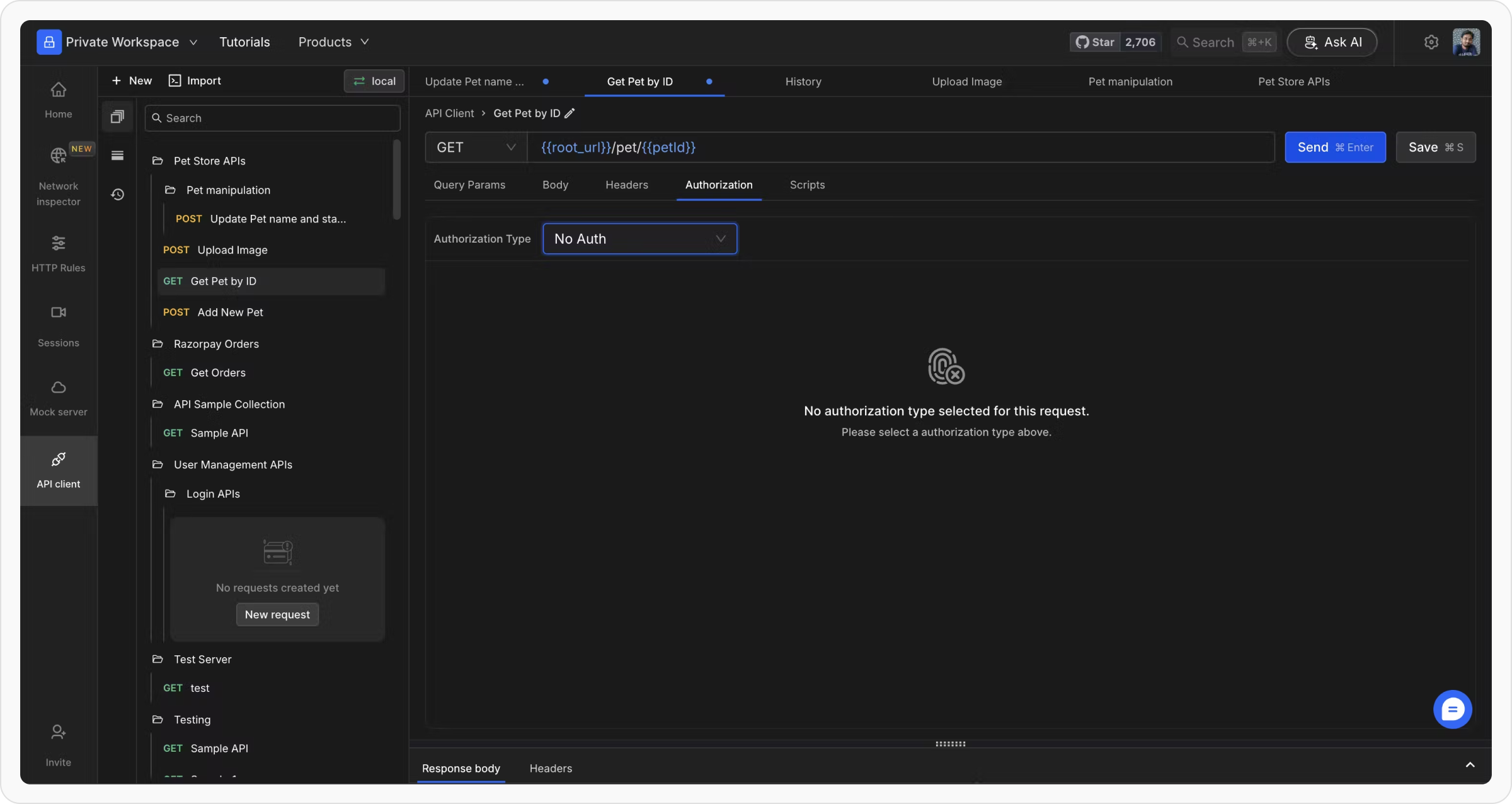 Requestly won’t send authorization details with a request unless you specify an auth type. If your request doesn’t require authorization, select “No Auth” from the Auth Type dropdown list.