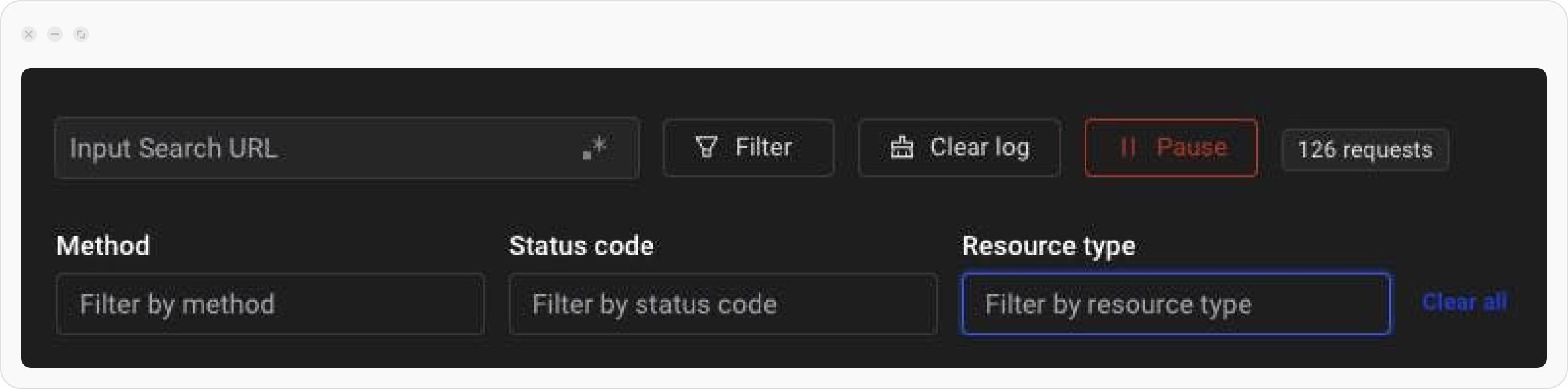 - Resource Type: Focus on specific resource types like HTML, JSON, JavaScript, CSS, Images, Media (Audio and Video), FormData, or Fonts.