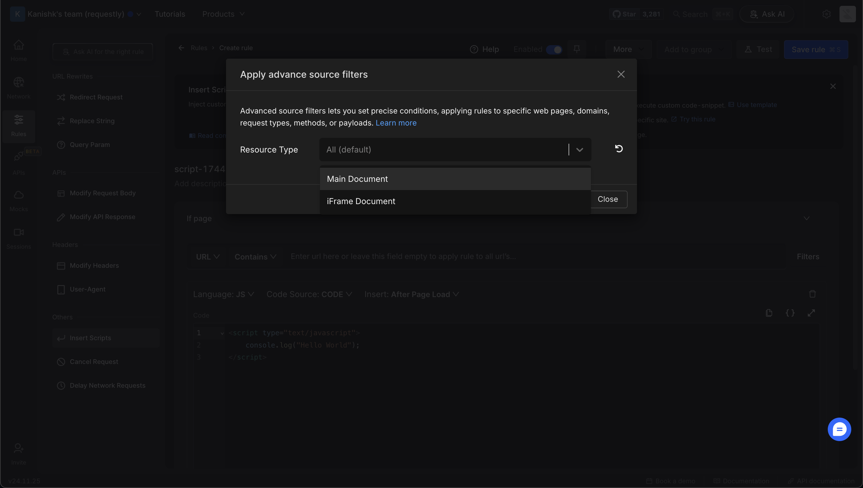 - Page Domain Name: Limit targeting to requests originating from a specific domain. This is especially useful for distinguishing between network calls made from different websites, such as CDN calls shared across multiple domains.