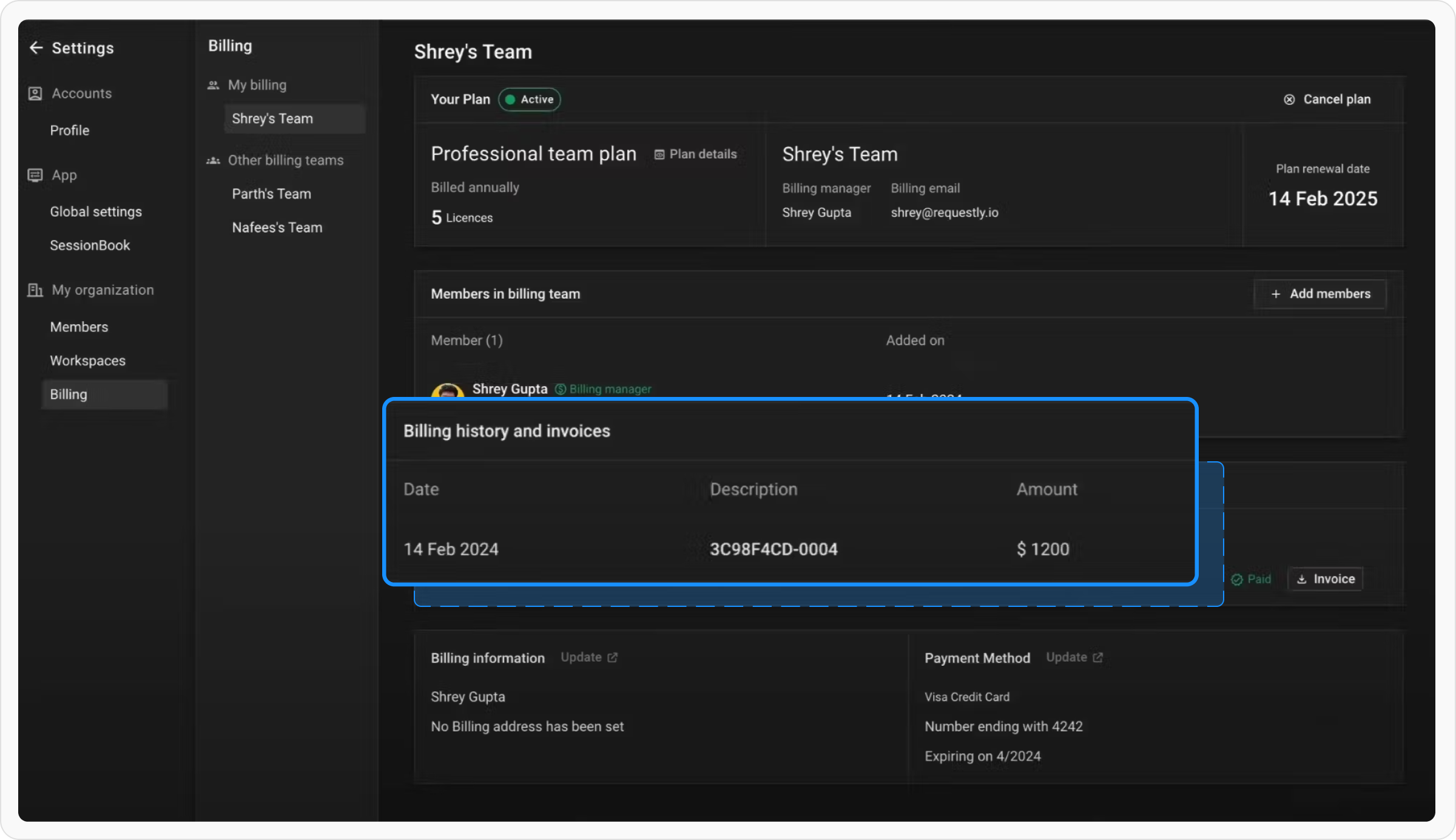 Efficient license management is essential for seamless operations. Requestly allows organizations to effortlessly manage their subscriptions and licenses.