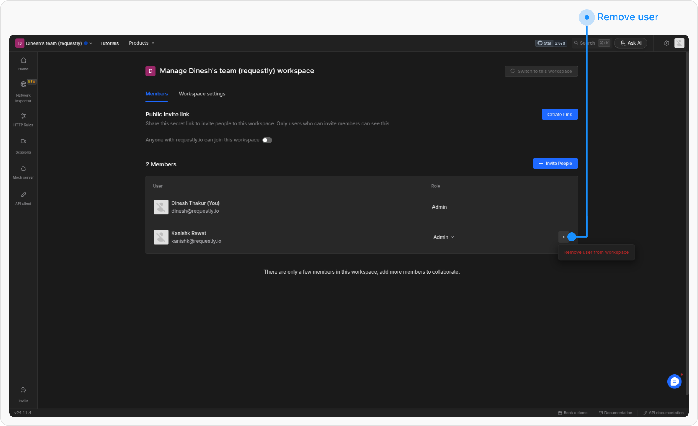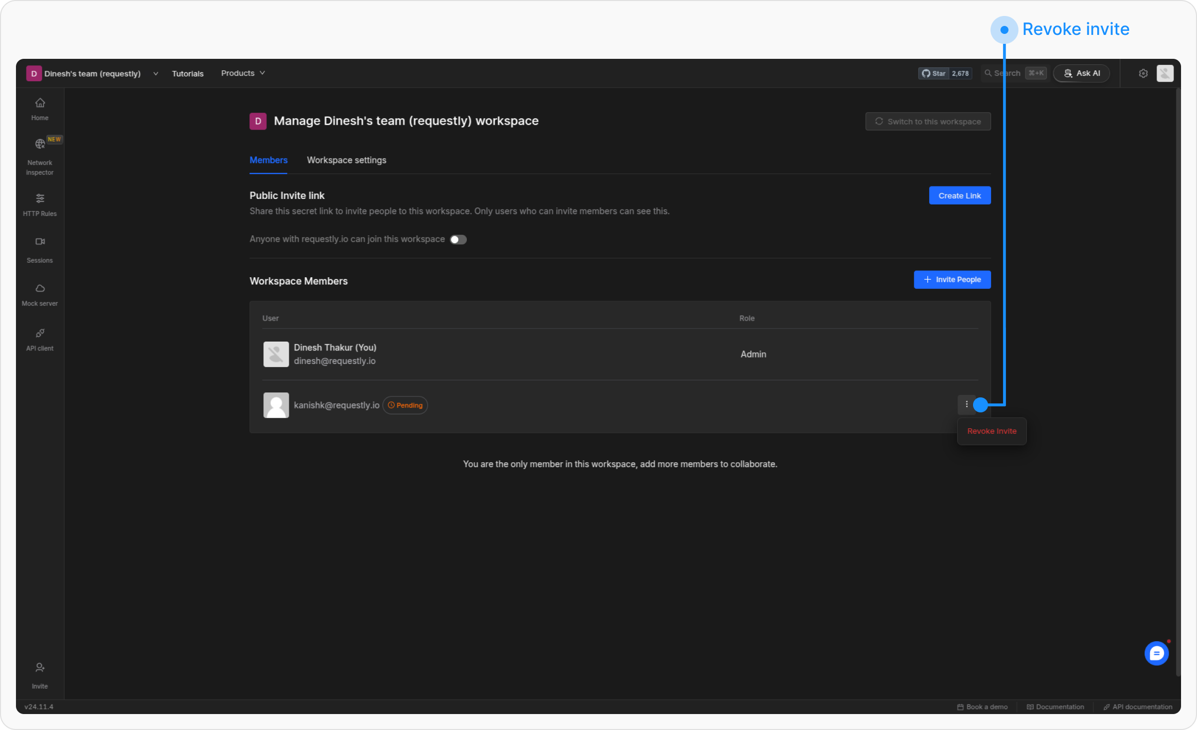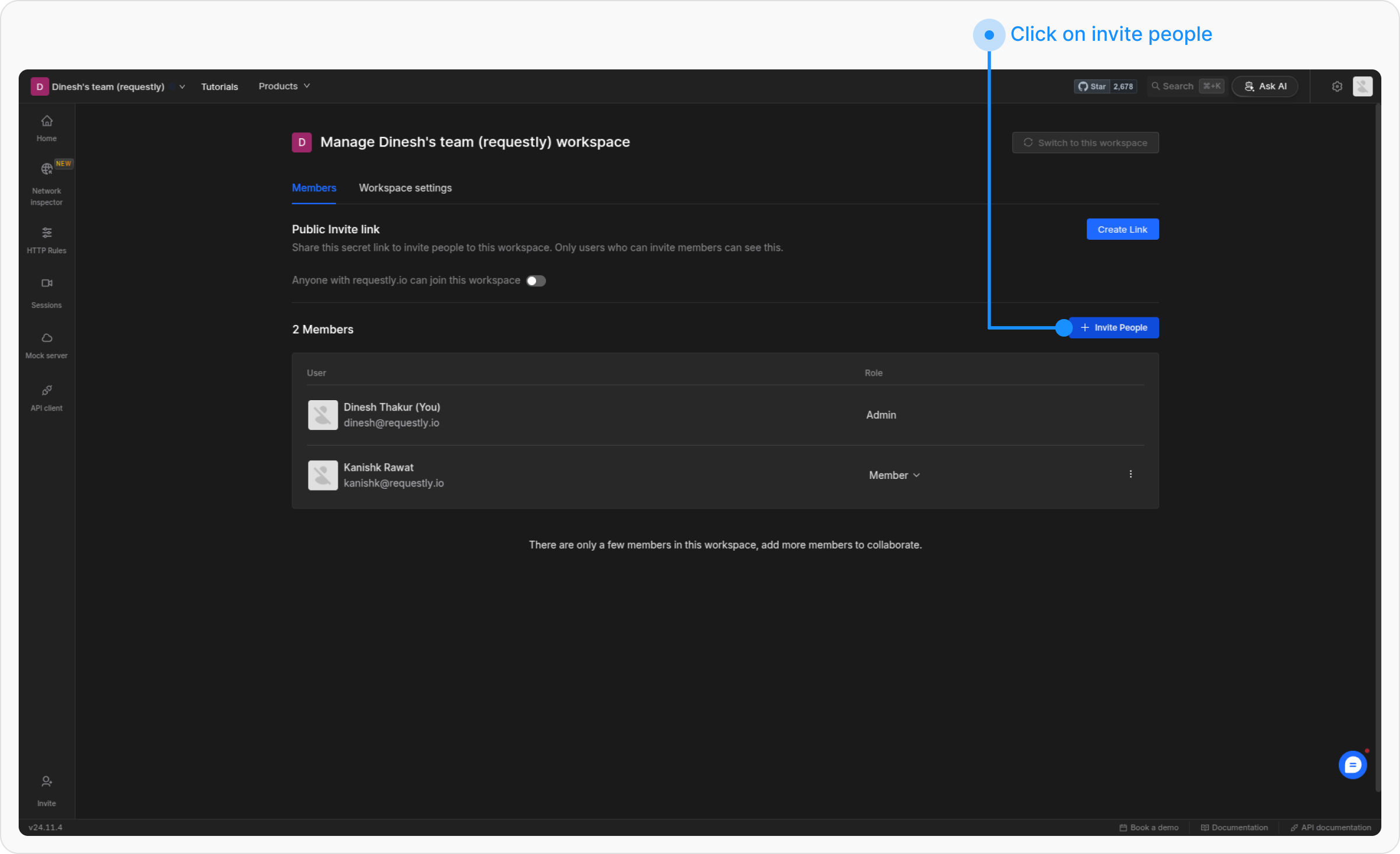Navigate to the Requestly dashboard and switch to the workspace where you want to add members.